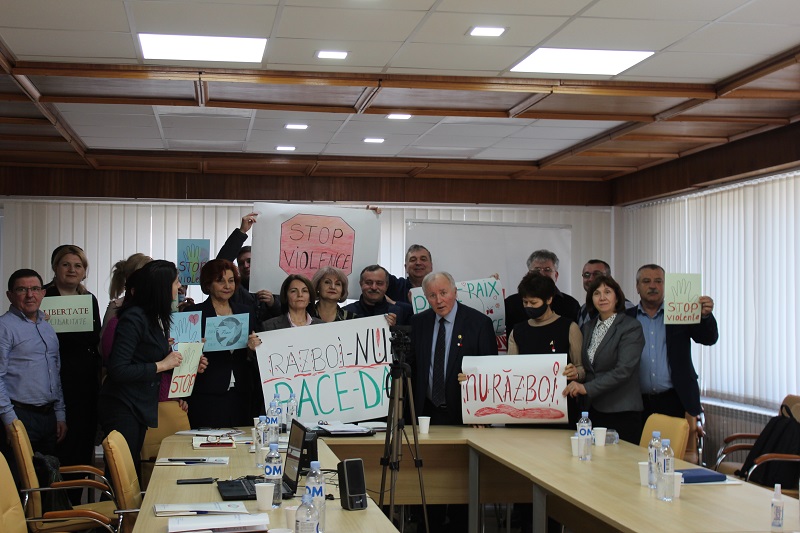 Iar spre finalul ședinței, membrii Consiliului au organizat flash mob în vederea susținerii cetățenilor ucraineni prin mesaje de solidaritate, făcând apel la pace: „Vrem pace”, „Pace lumii”, „Nu război”, „Stop violența”.