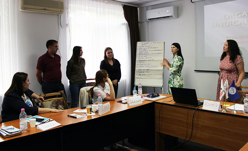 În prima parte a seminarului, tinerii sindicaliști au fost instruiți de către doamna Lilia Franț, vicepreședinte al Confederației Naționale a Sindicatelor din Moldova (CNSM), care, prin metode interactive, a informat despre organizarea activității sindicale, obiectivele și misiunea sindicatelor, rolul și importanța organizațiilor sindicale în societate. Pentru aprofundarea cunoștințelor, tinerii din comunicații au fost provocați să participe la ateliere de lucru, dar și la rezolvarea rebusului cu tematica sindicală.