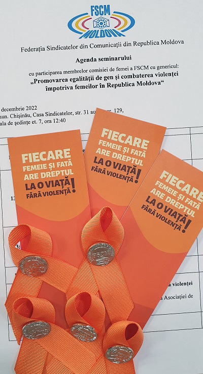 Pe data de 8 decembrie, în incinta Casei Sindicatelor, Federația Sindicatelor din Comunicații (FSCM) a desfășurat un seminar de instruire pentru membrele Comisiei de Femei cu genericul „Promovarea egalității de gen și combaterea violenței împotriva femeilor“. În scopul sensibilizării asupra problemei date, evenimentul este organizat în contextul desfășurării campaniei cu privire la eliminarea violenței împotriva fetelor și femeilor „16 zile de activism împotriva violenței în bază de gen în Republica Moldova“.