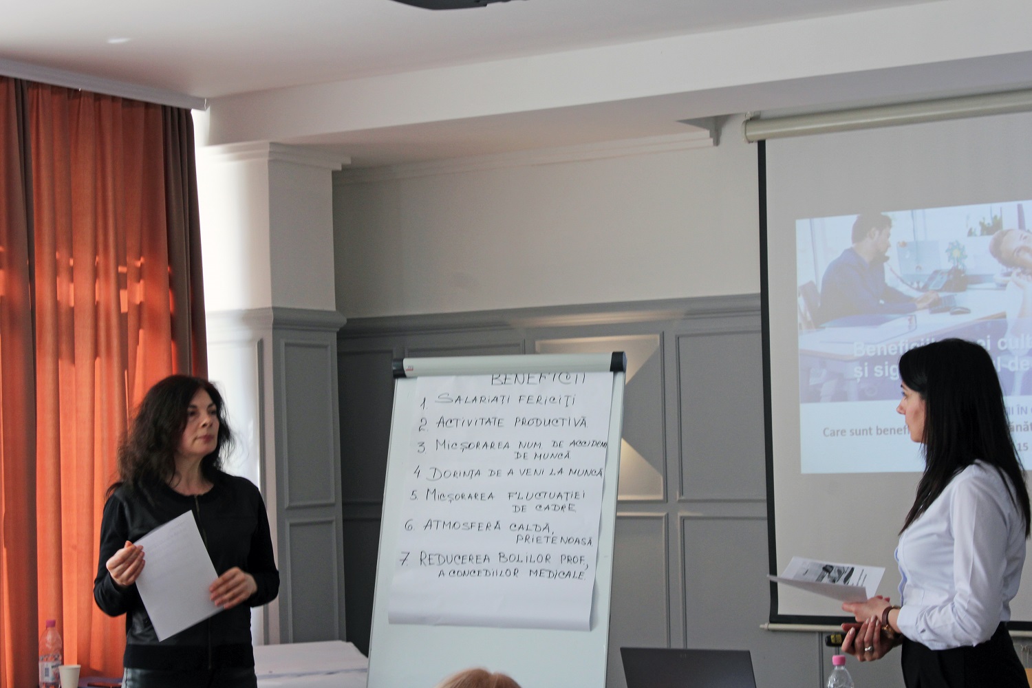 Tot în cadrul acestei activități, participanții au fost încurajați să fie creativi și să propună idei pentru campanii de promovare a unui mediu de muncă sigur și sănătos. Aceste campanii au fost concepute pentru a sensibiliza angajații și angajatorii cu privire la importanța securității și sănătății la locul de muncă și pentru a încuraja schimbările pozitive în comportamentul și practicile de lucru.